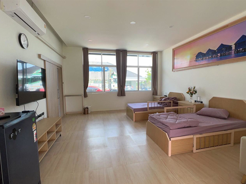 - เราสร้างสภาพแวดล้อมที่เป็นมิตร ใกล้ชิดธรรมชาติ พร้อมบรรยากาศที่อบอุ่นและปลอดภัย ให้ผู้สูงอายุได้พักผ่อนอย่างมีความสุข รู้สึกผ่อนคลาย และมีคุณภาพชีวิตที่ดีขึ้นทุกวัน